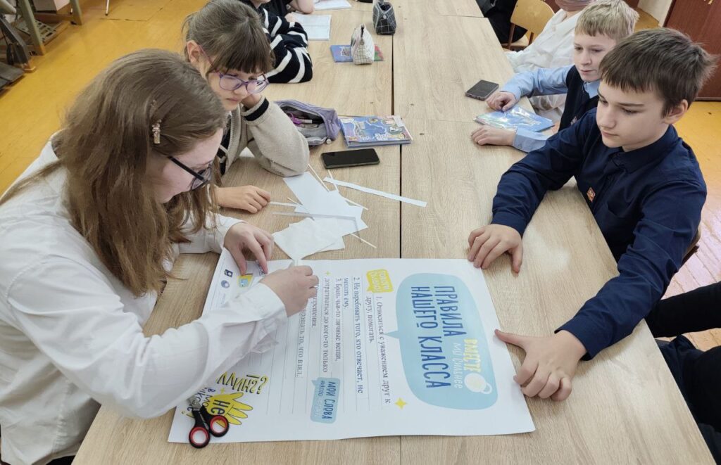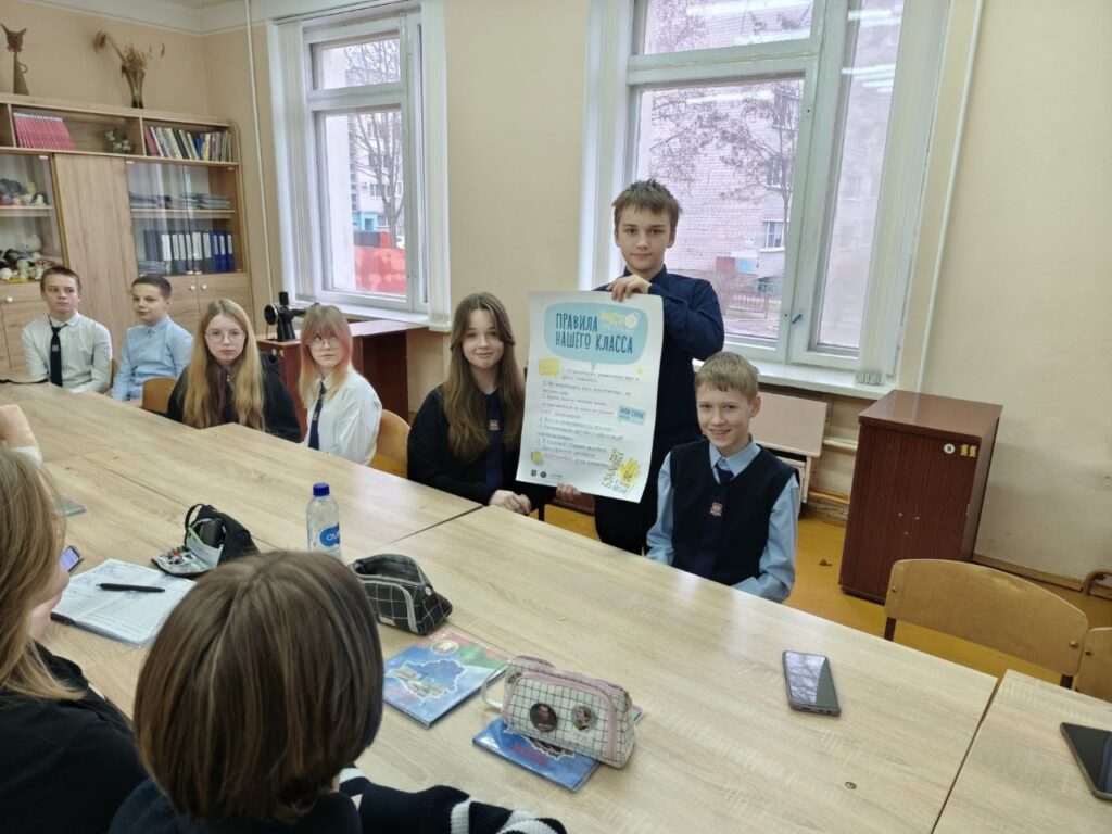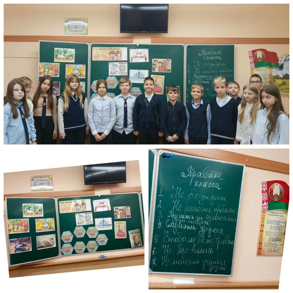 Проведение классными руководителями классных часов «Насилие» (цель: повысить уровень знаний учащихся о проблеме насилия, его негативных последствиях), «Установление правил» (цель: способствовать осознанию учащимися необходимости придерживаться правил и ценностей, которые сформируют доброжелательный климат в классе и школе), «Создание плакатов.